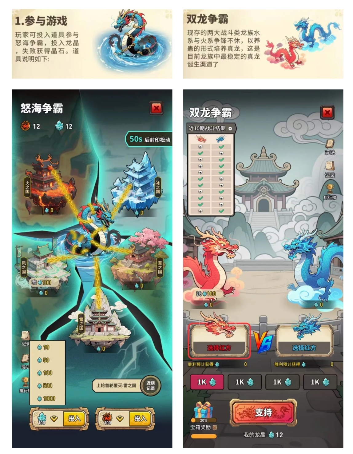 龙晶宝库也不能错过,相当于游戏里的“资源增益buff”。分十个灵石等级,投入越多回馈越多,还能涨繁荣度。
